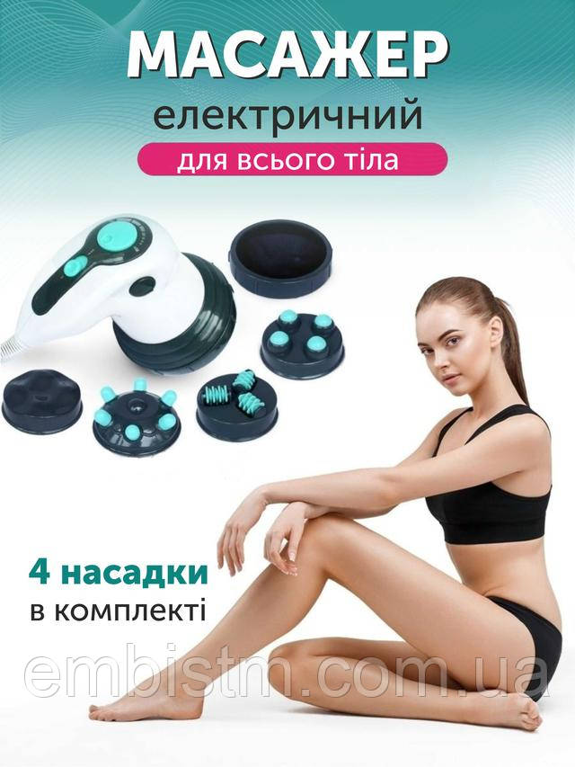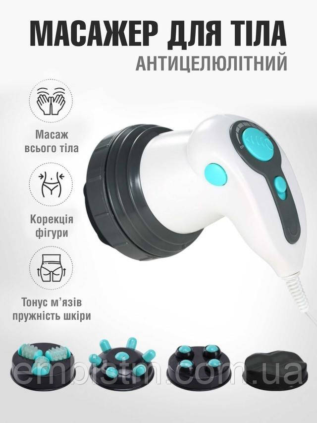 Вібромасажер антицелюлітний масажер 3 режими 4 насадки роликовий з ІК підігрівом
